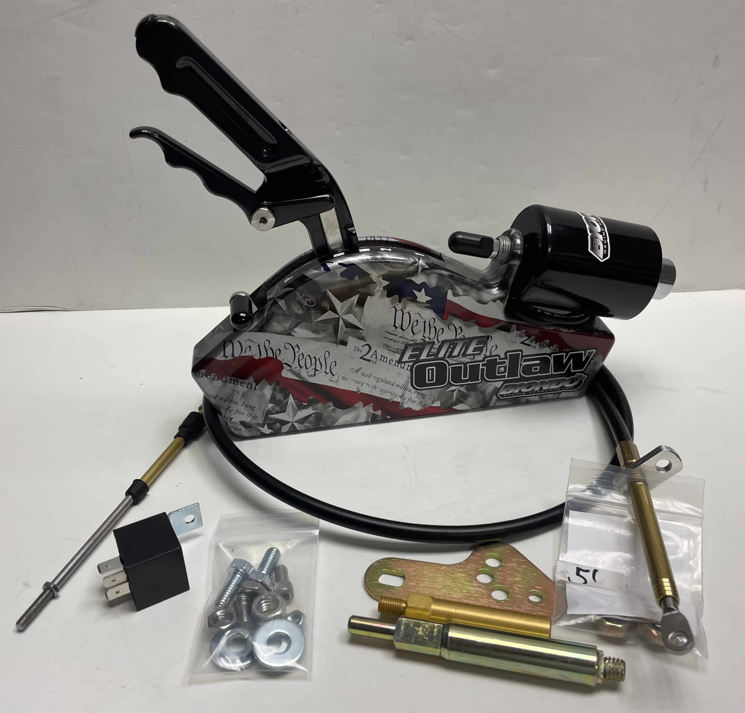 - Elite Outlaw Shifter comes 100% RACE READY with electric or co2 shifting, 5, or 9′ cable, shift arm, and hardware.